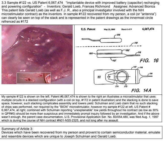 The Perpetrators: The recovered implants perfectly align with fabrication methods detailed in U.S. Patent Office filings belonging to research scientists Joseph Schulman, Gerald Loeb, and Philip Troyk.